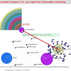 An experiment on minimal visualizations of human communities. These minimal creatures have offspring, fight and die depending on "social capital" data from a human community. We use semantic and graph analysis of twitter interactions to compute our data. You can try a static version here.
